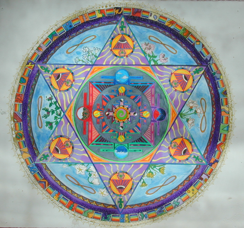 The mandalas in color were done (with help from my friend, Deborah, between 1995-1999.
